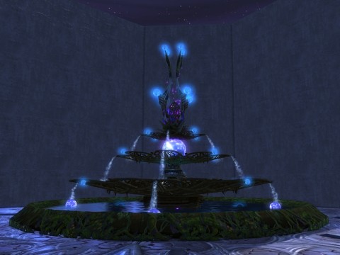 This fountain was created by Anaemeah@Greybriar and posting this on their behalf. The materials needed to build are: 36 Blue Glowing Orb, 4 Violet Twistflower, 1 Enormous Pool on a Pedestal, 12 Pouring Water Effect, 2 Limestone Rectangle, 34 Centaur Cage Door, 2 Elegant Shrine, 1 Lady Fern, 5 Magical Orb Display, 2 Centaur Cage, 1 Purple Glowing Orb.
