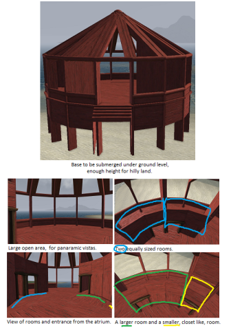 Requires red wood: sphere-1, square-44, planks-73, triangles-6, rectangles-10, poles-31 and 4 door frame.